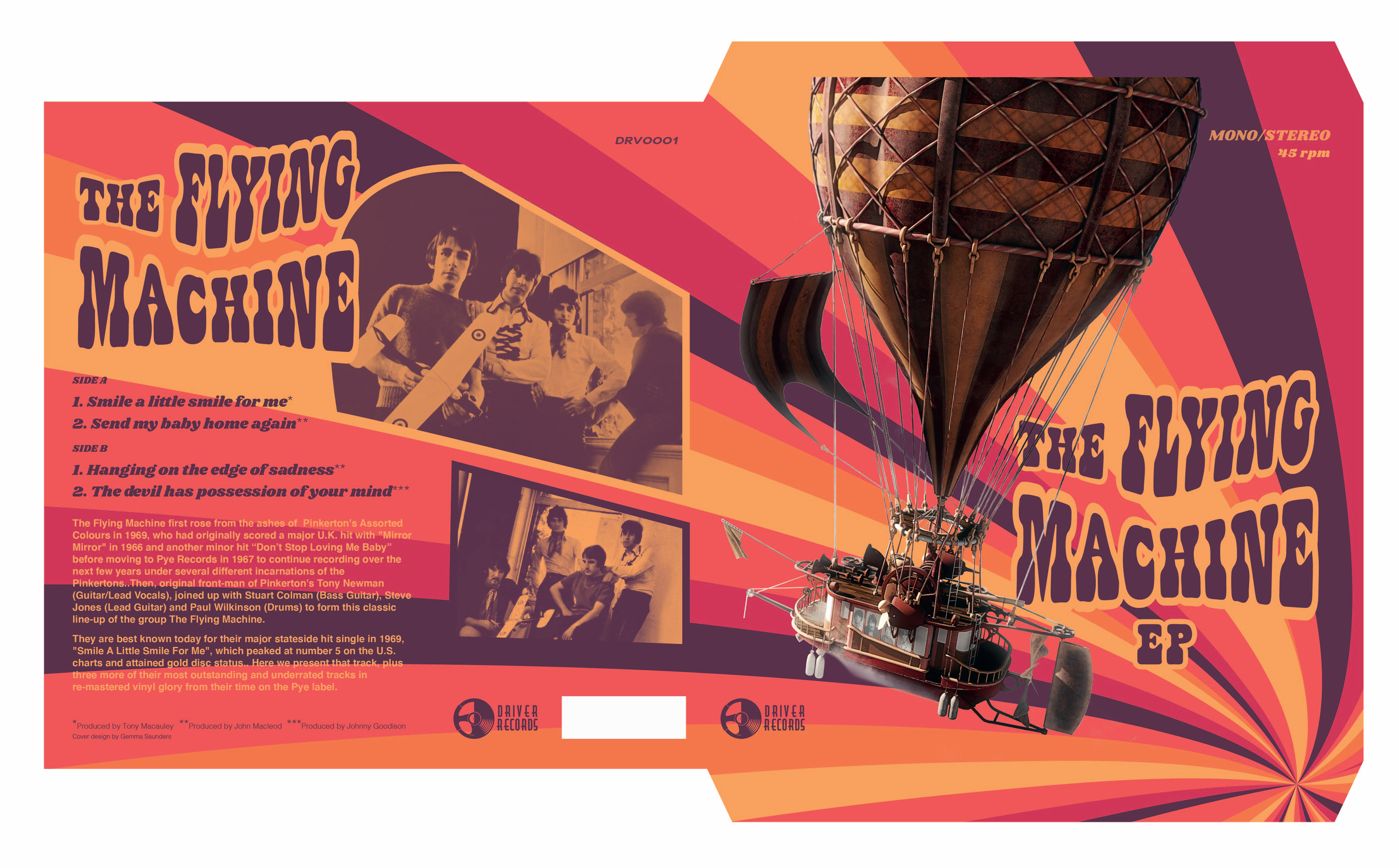 Driver Records originally approached me to design their logo. After completion and the client being extremely happy with the end result, they asked me to design the artwork for their first album by The Flying Machine (due to be released Oct '21).